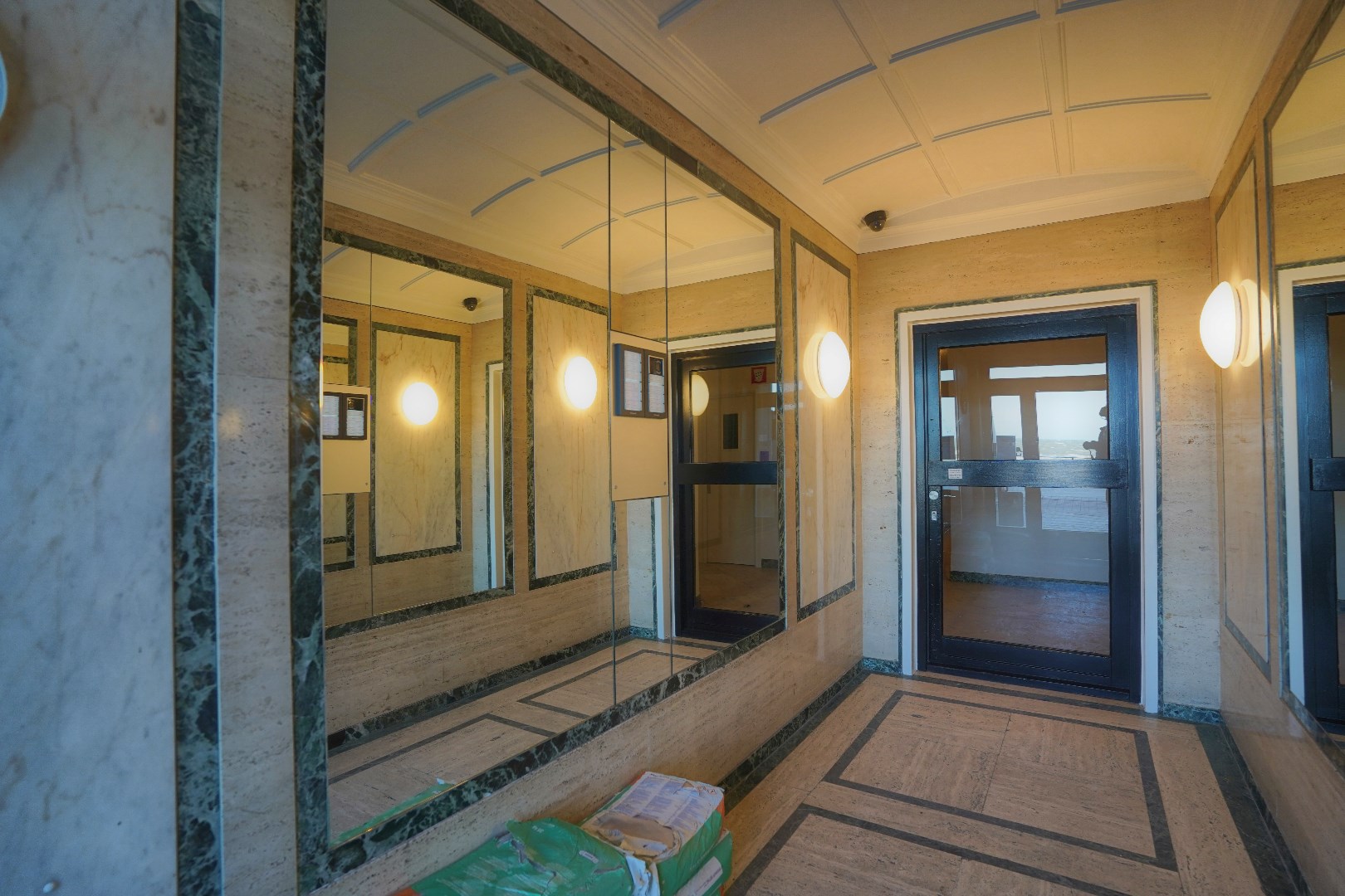Gelegen in een klassevol gebouw met marmeren inkomhal, op het beste deel van de Promenade, op enkele stappen van de casino nodigt dit appt uit om er zelfs permanent te komen wonen.