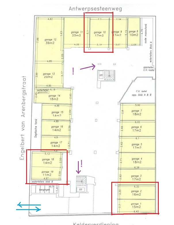 Doorrijhoogte parking max 1,85m. Elektriciteit in de garages aanvraagbaar ... bij syndic.