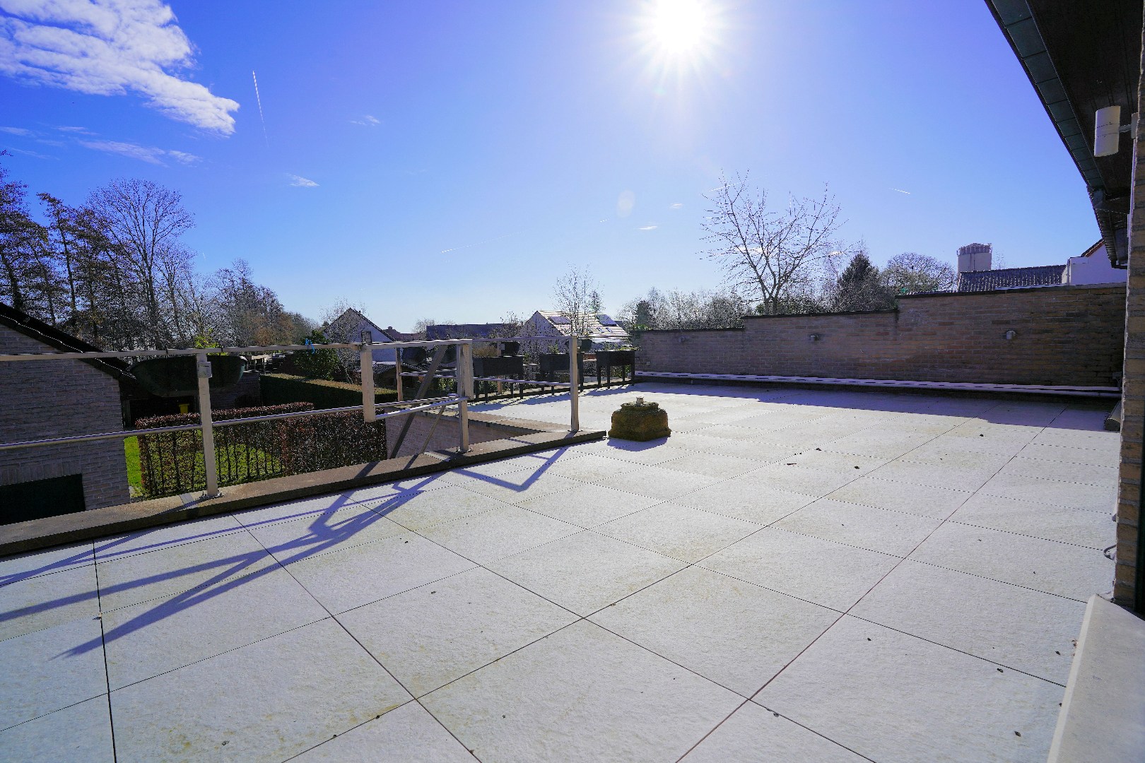 Via de voordeur rechts kom je dan op de duplex alwaar zich een riante woonst met 3 slpk, en groot terras bevindt.
