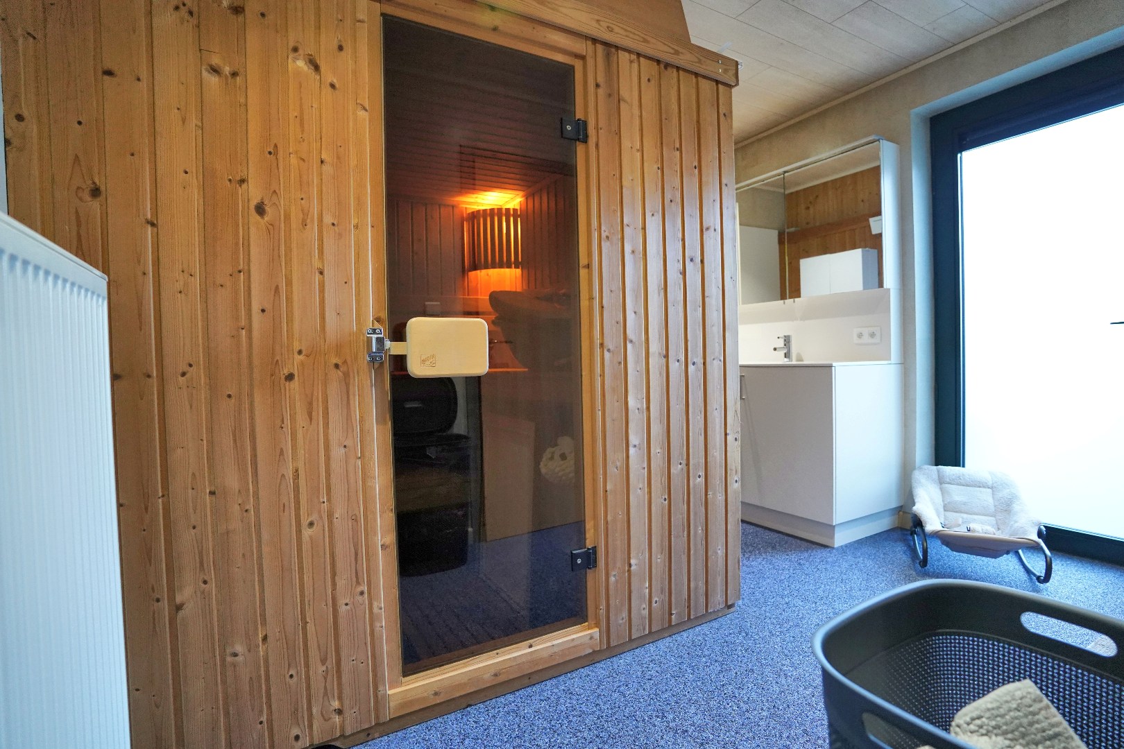 De grote garage (met mancave of slaapplaats) kan worden omgebouwd tot atelier.