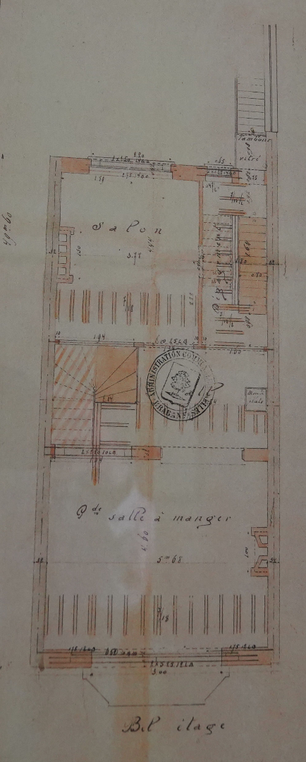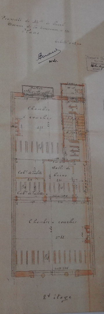 Of privé is het 1e een luxueus, groot salon. In oorsprong was een goederenlift (voor het eten op zilveren plateaus) voorzien tot hier.