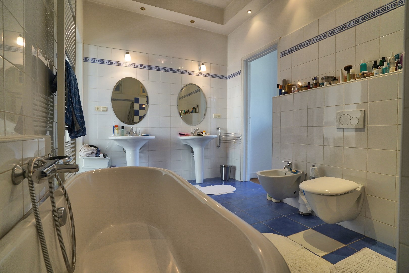 Dak vernieuwd in 2003, dakgoten en plat in zink, alsook ... alle schrijnwerk, sanitair, keuken, CV Viessmann. Elke verd. heeft eigen nieuwe zekeringenkast.