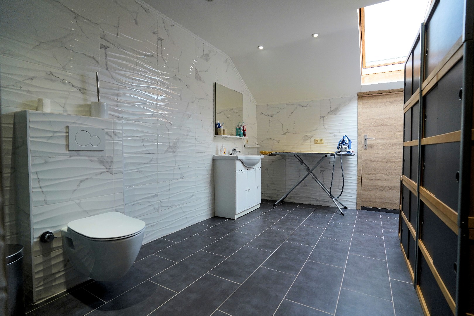 De zonnepanelen geven genoeg stroom om zich elektrisch te verwarmen. Er wordt slechts 100,-€ /maand betaald qua energieverbruik. Hoog tijd dat de EPC experts de wetgeving aanpassen. Het dak is perfect geïsoleerd.