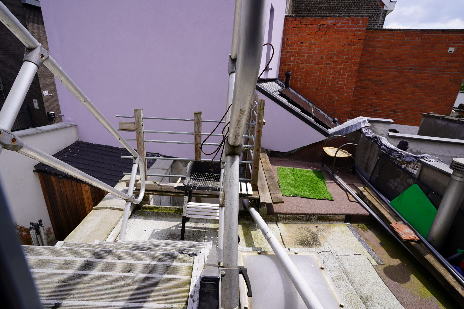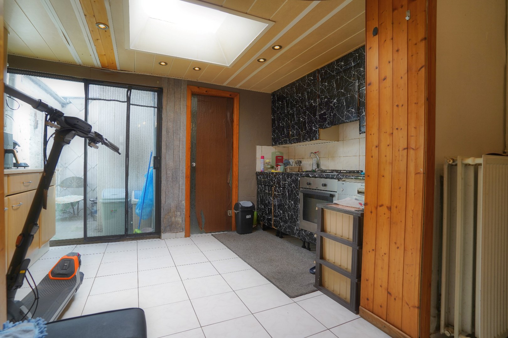 Deze rustige straat ligt net achter de doorgangsweg naar stad en autowegen. Achter de verzorgde gevel vindt men vooraan een kamer, momenteel als slpk gebruikt doch kan evengoed bureel of fietsen omvatten.