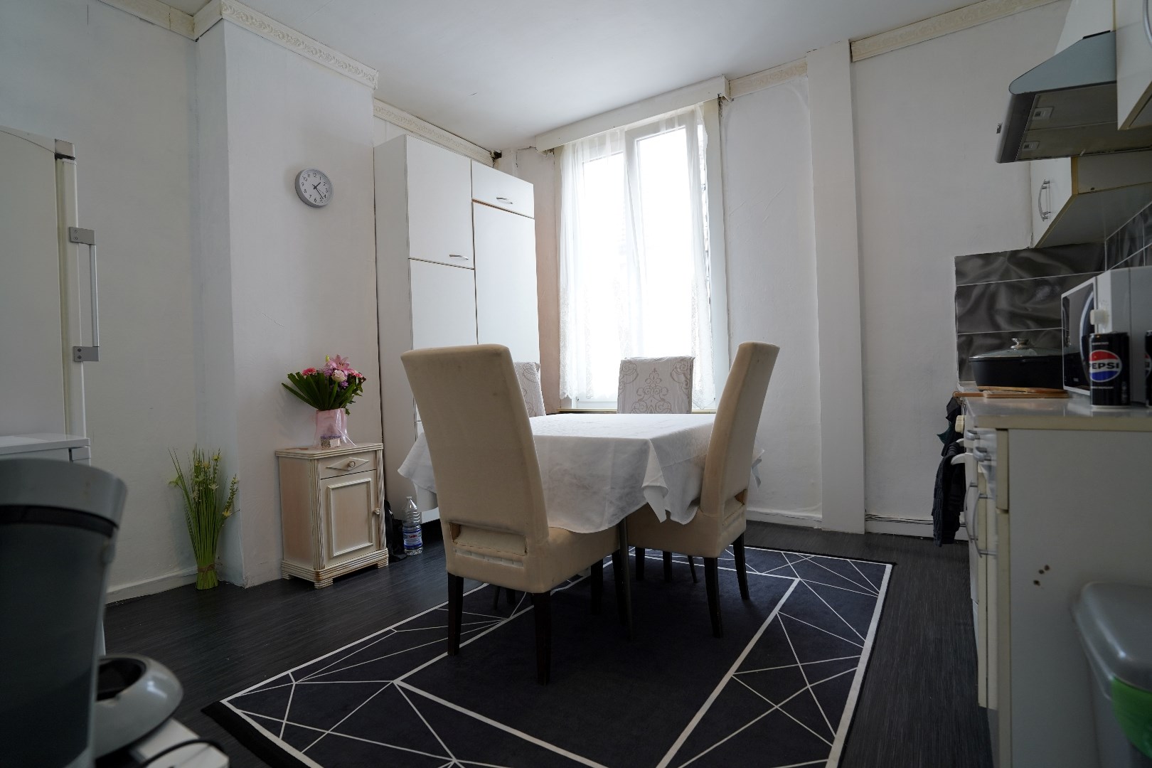 Living en keuken lopen ineen. Een nieuwe keuken zou niet misstaan.