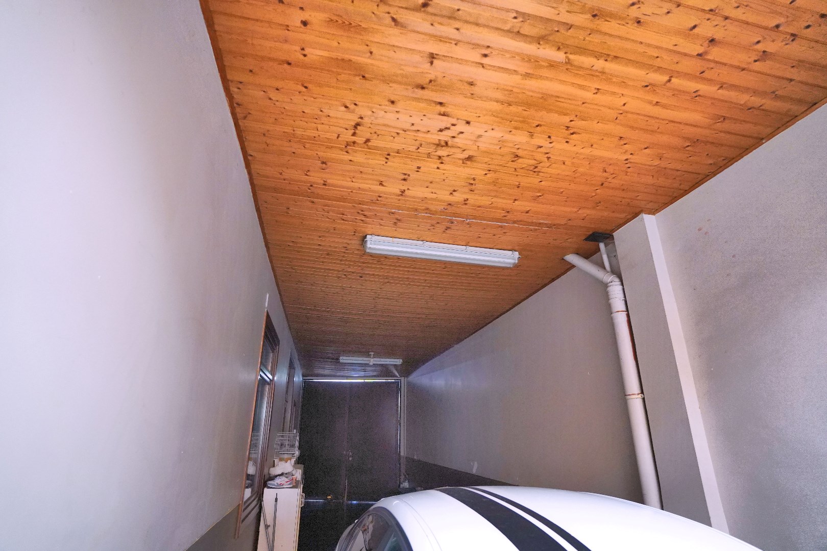 De poort meet 2,6 x 3 m, er is een representatief bureel en een goed dak boven de werkplaats.