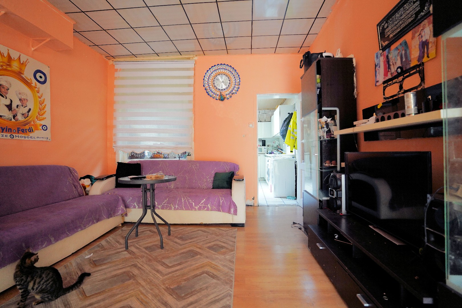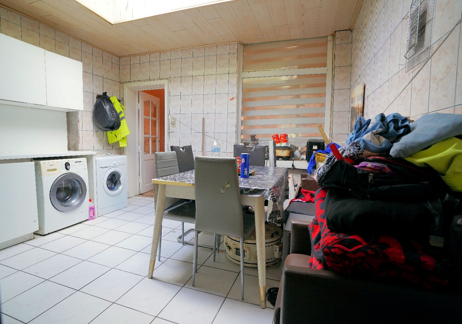 Suggesties : venster tussen living en keuken uithalen, schuifraam naar de koer, nieuwe keuken.