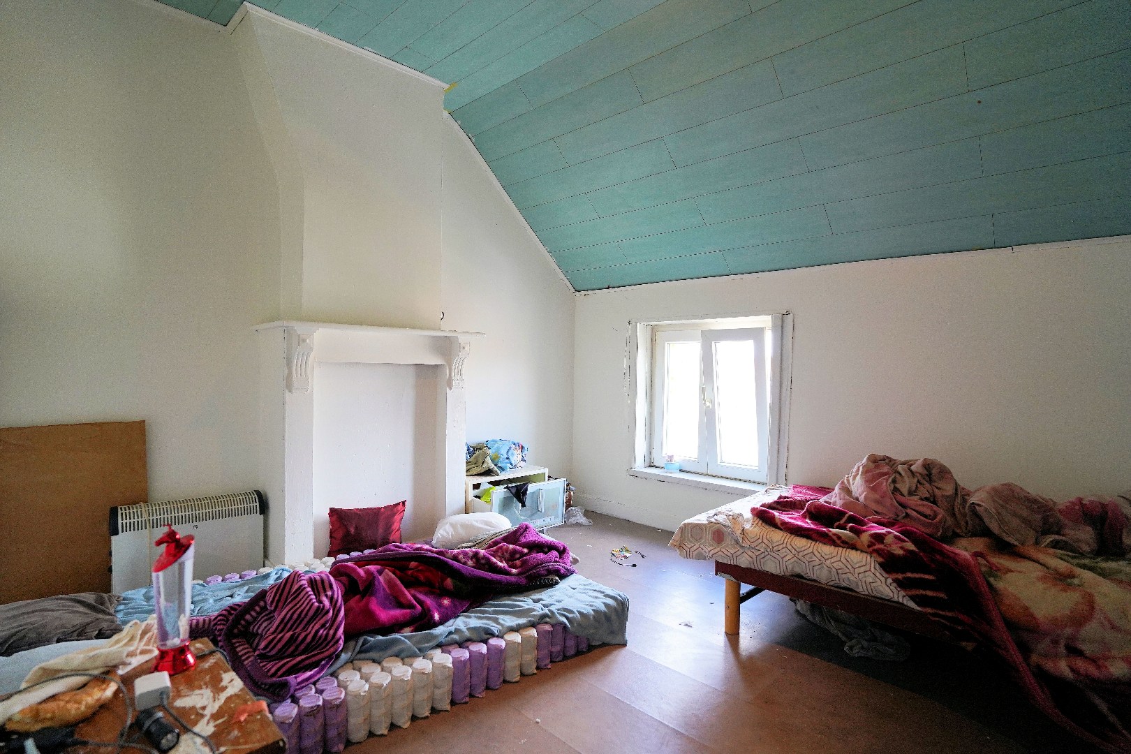 Slpk 1e achteraan veranderen in badkamer, trap naar zolder en deze inrichten naar 1-2 slpk. CV, momenteel enkel op glv, doortrekken naar alle verdiepingen.