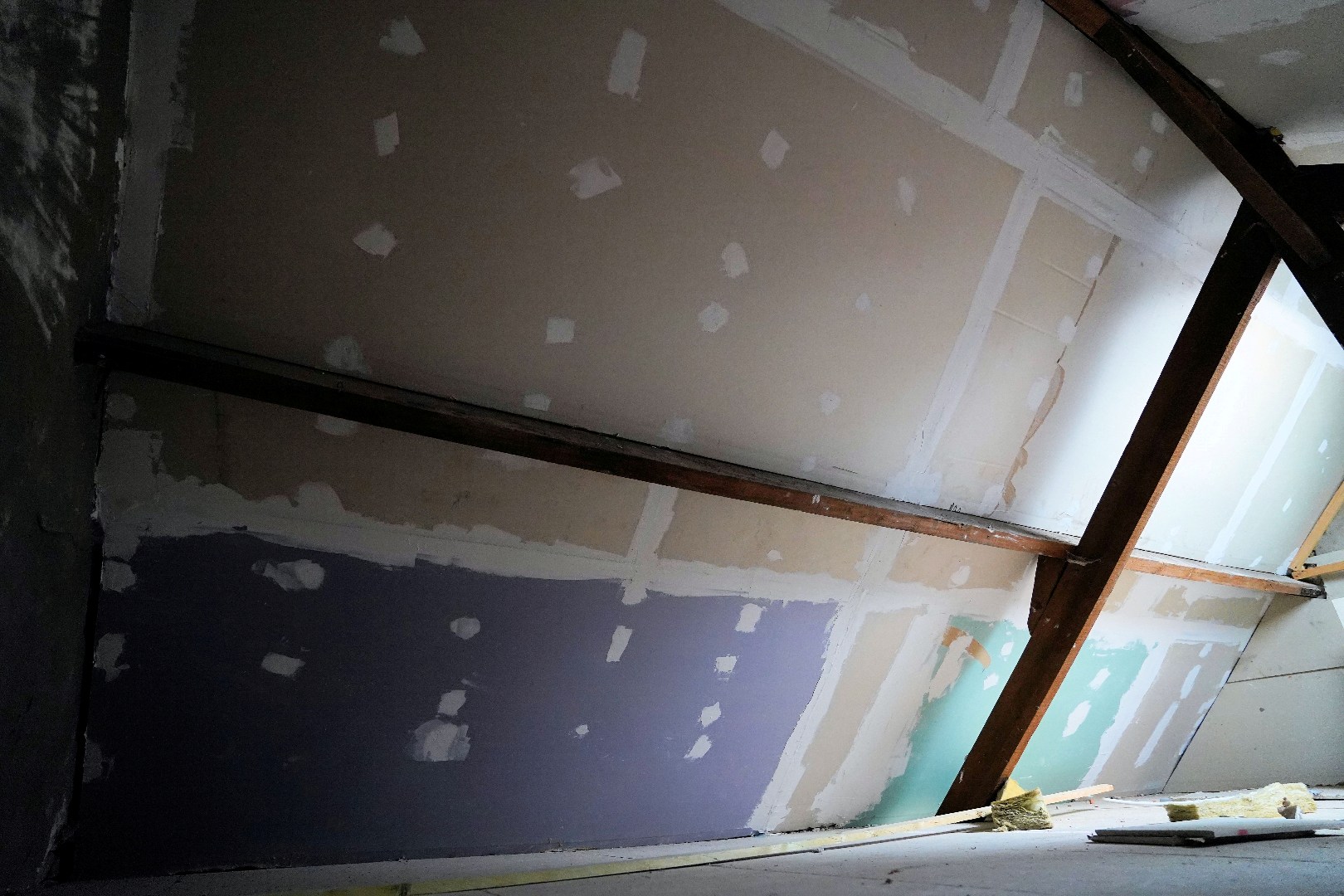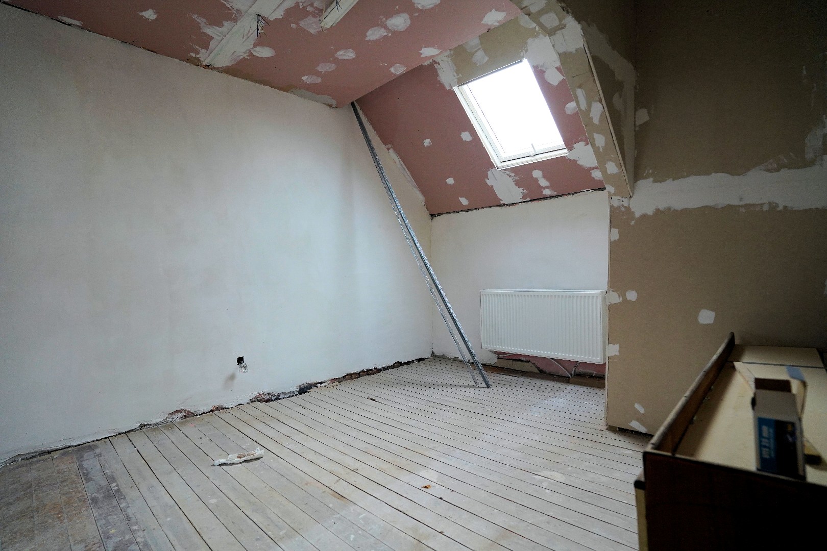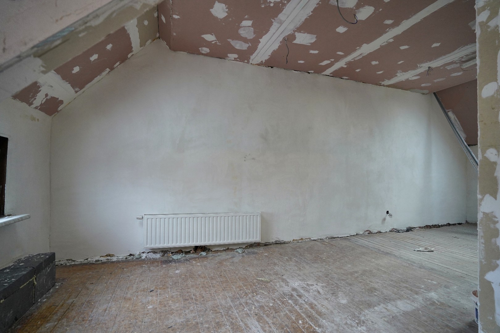 Daken zijn geïsoleerd, elektriciteit is gelegd, radiatoren geplaatst, groot schuifraam in de keuken.