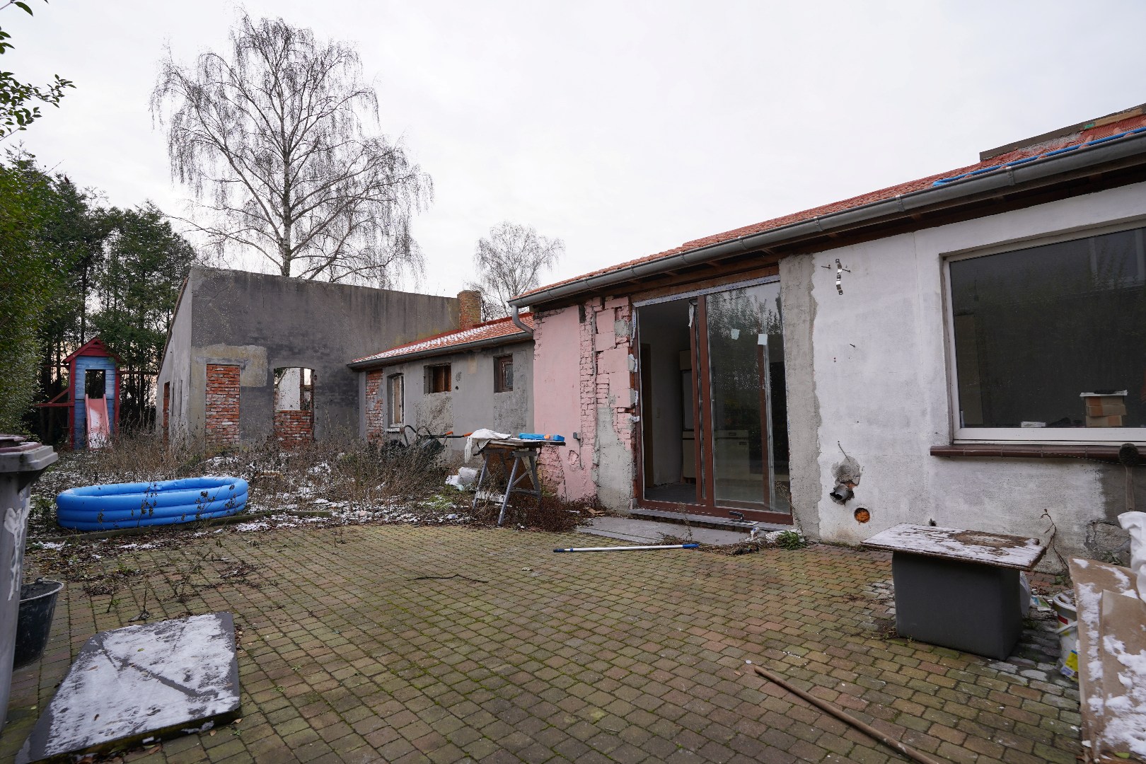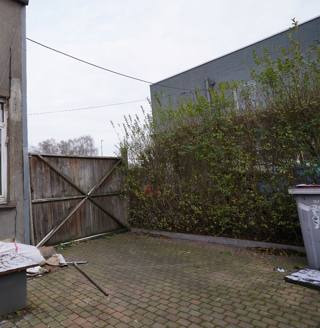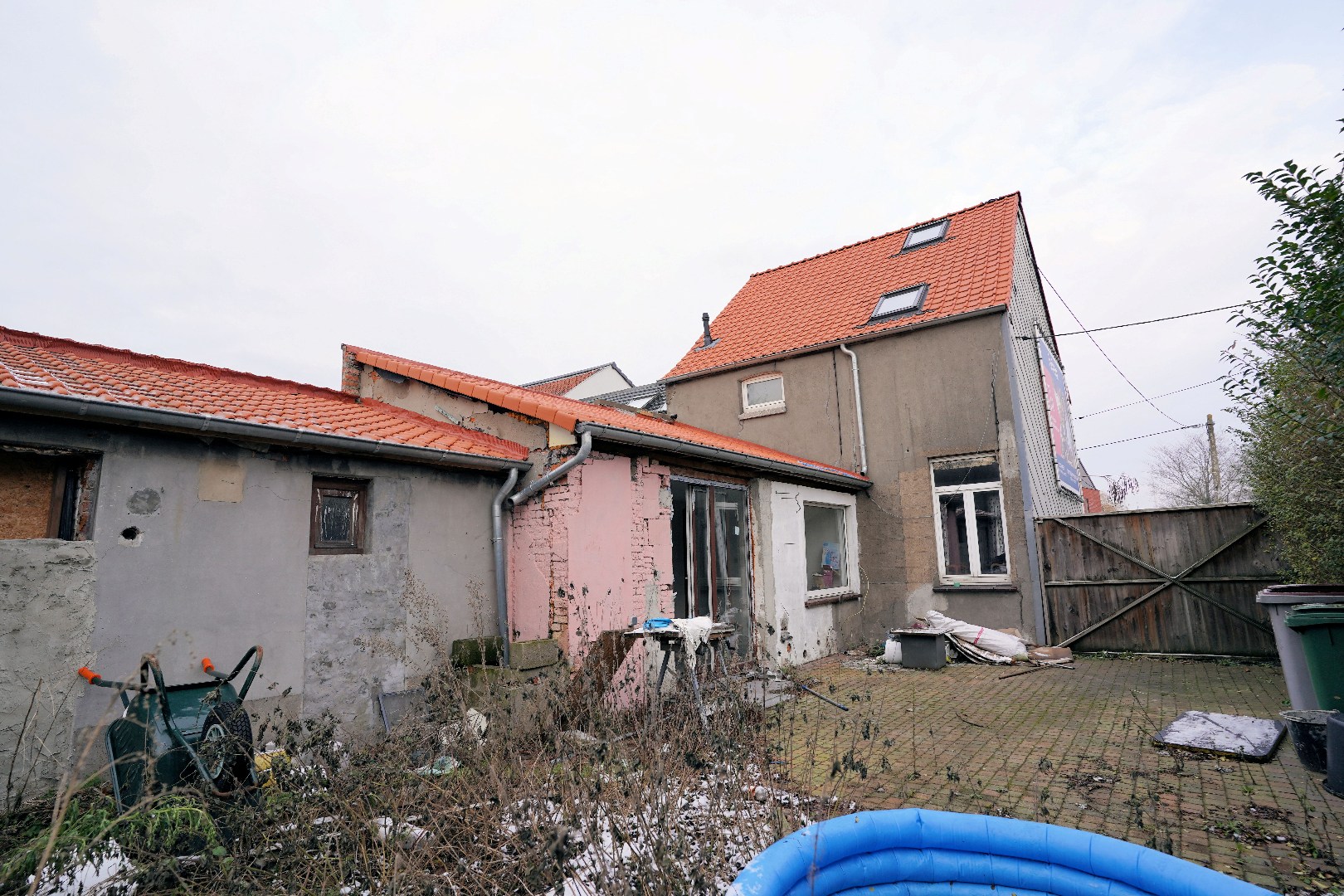 Achteraan zou de huidige eigenares de berging willen afbreken, evenwel is deze half blijven staan. Kan nog van pas komen.