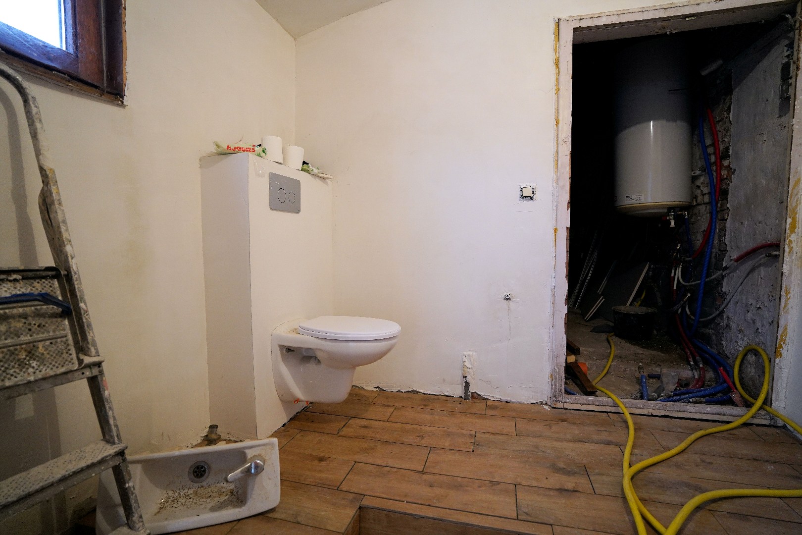 Kelder dichten, muren plakken, 2e toilet (met evt douche, er is plaats) bijzetten boven, badkamer en keuken afwerken, laminaat, eventueel buitenmuren voorzien van crepi. Door een stielman gedaan is de kost 50.000, zelf is dat voor 30.000 gedaan.